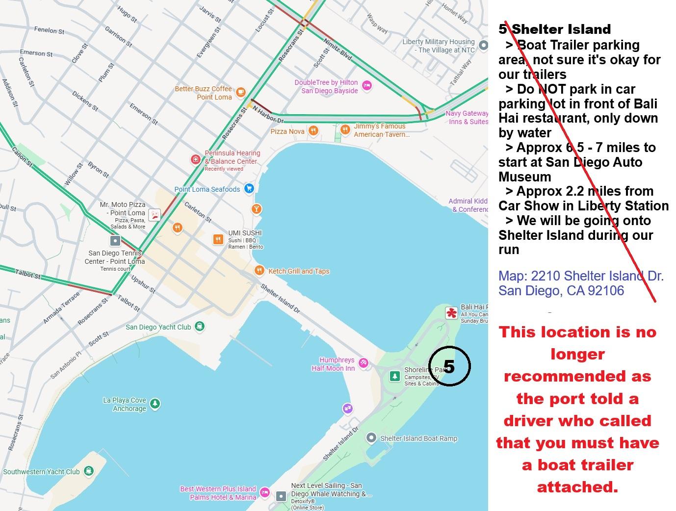 The City of San Diego will now charge for parking in that area. We have provided some areas which appear to be free on first map below around Mission Bay and Liberty Station. Also included below are maps of suggested routes from these parking locations to the start of the event at the San Diego Auto Museum.